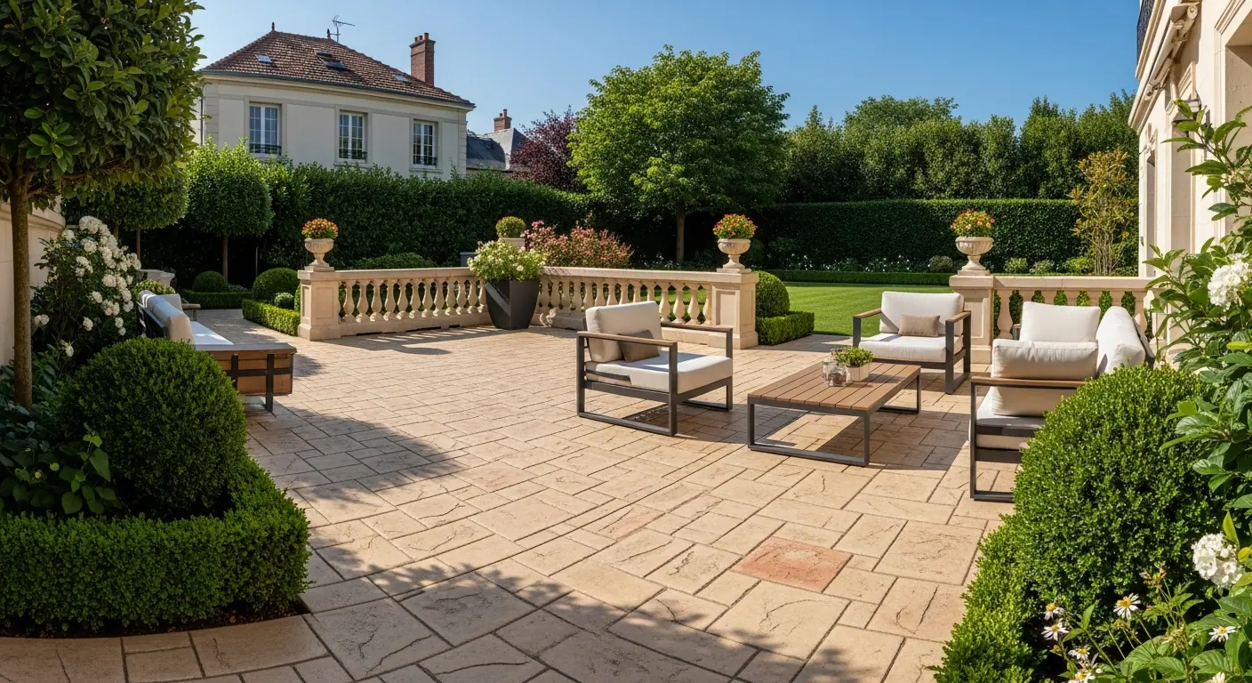 Transformez vos espaces extérieurs avec le béton imprimé : allées, terrasses, plages de piscine. Installation professionnelle dans les Hauts-de-Seine.
